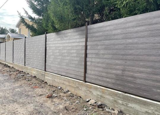 Заборная доска из древесно-полимерного композита имеет текстуру под дерево с обеих сторон. Используется для строительства заборов, калиток, ворот. Также применяется при обшивки цоколя и подступенков и для обустройства фасада.