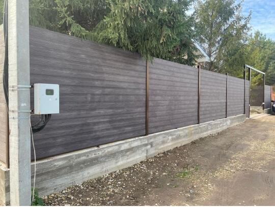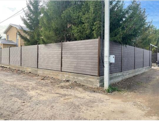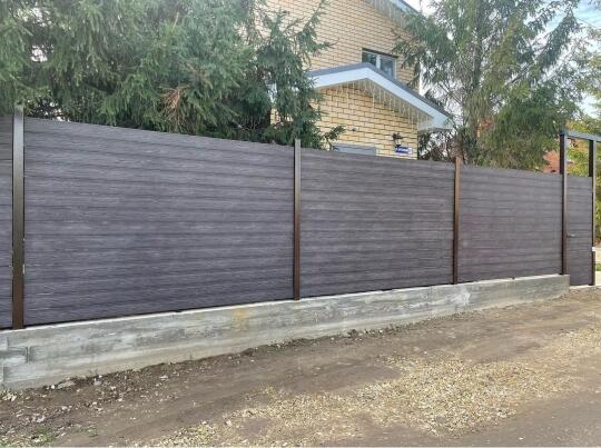Заборная доска из древесно-полимерного композита имеет текстуру под дерево с обеих сторон. Используется для строительства заборов, калиток, ворот. Также применяется при обшивки цоколя и подступенков и для обустройства фасада.
